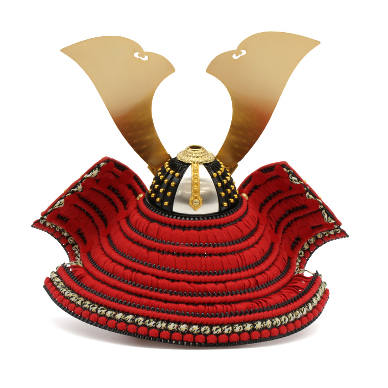 伝統的な赤色の威に金色の兜飾りは、存在感が大きく印象的で、末長くお飾りいただける品です。特徴的な結ぶ目の忍緒は「叶」という文字に見えることから、叶結びと呼ばれる、願いが叶うという意味のある縁起の良い結び方です。