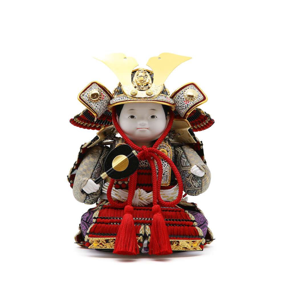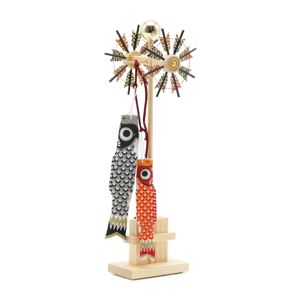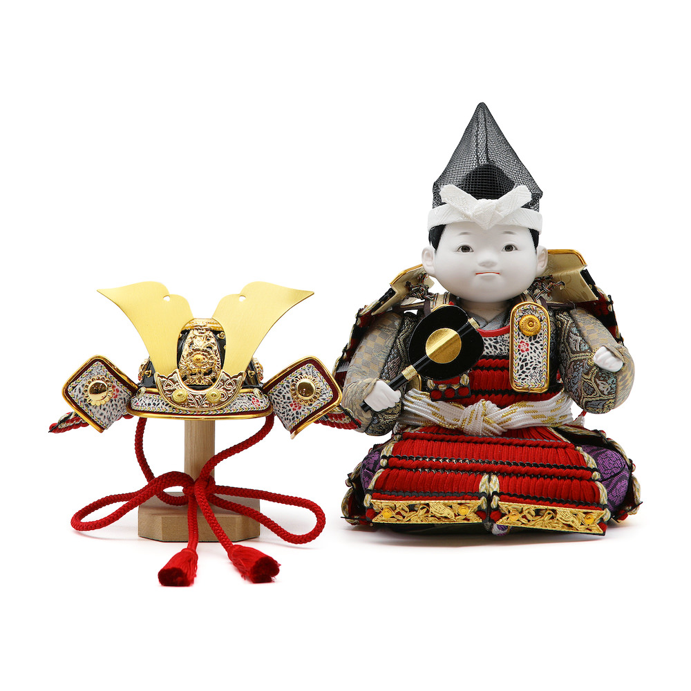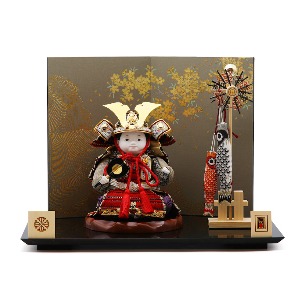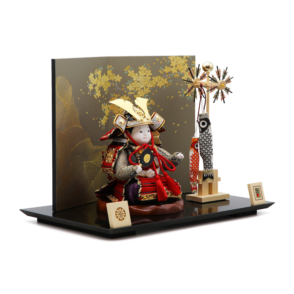 小物は、端午の節句らしく可愛らしい白木の鯉のぼり。伝統的な中にも儚い美しさ、伝統的工芸品のお人形の存在感を感じる武者人形飾りです。