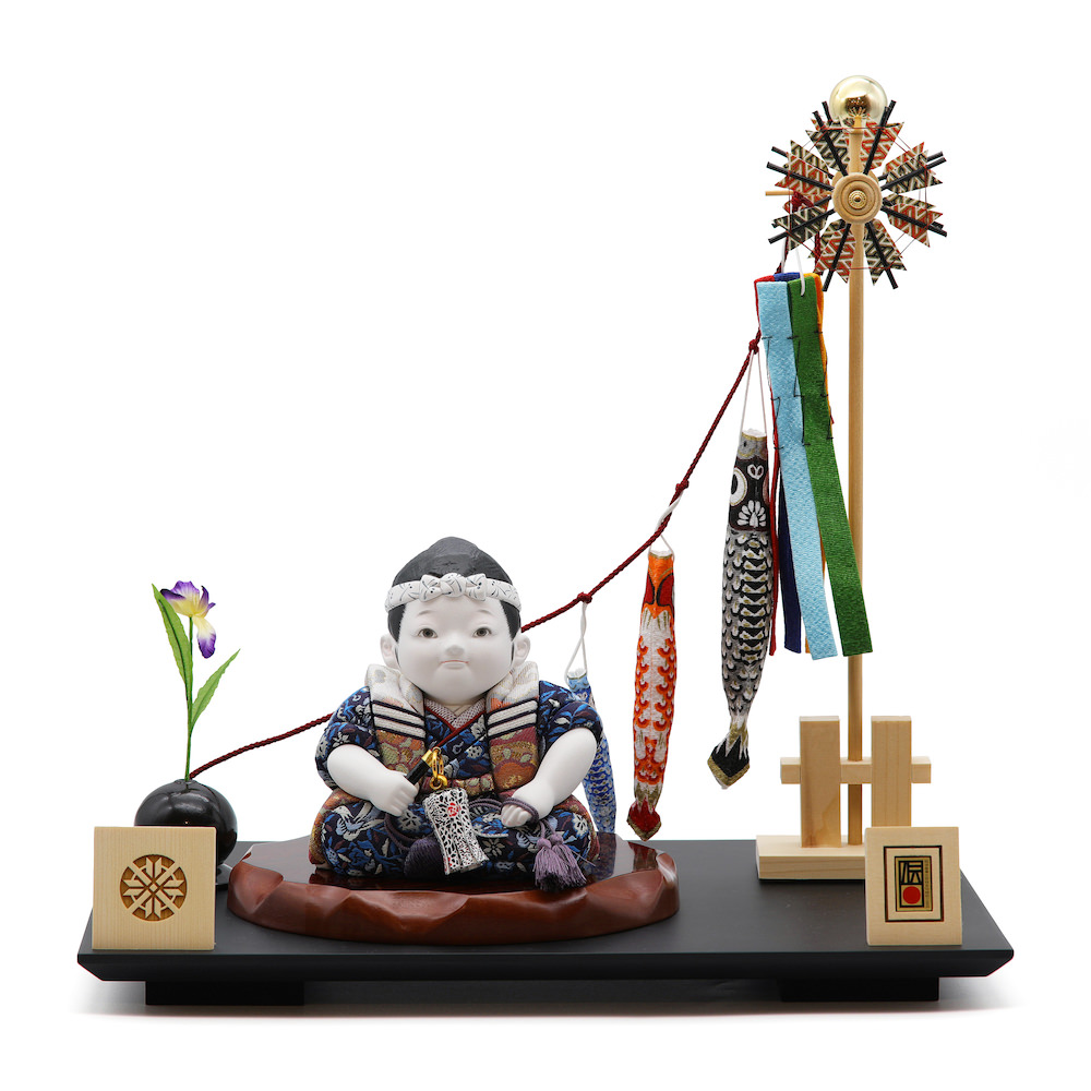 可愛らしくもたくましい幼顔のお顔の武者人形、お顔と手は瀬戸焼で製作されていることから伝統的工芸品の認定を受けている品です。お衣装は伝統的でも現代的な印象に、工房真こだわり国内最高品質の正絹の織物を使用しています。工房の武者人形の中でも最も小さいサイズながら、高いクオリティの細やかな仕上がりは圧倒的な品です。