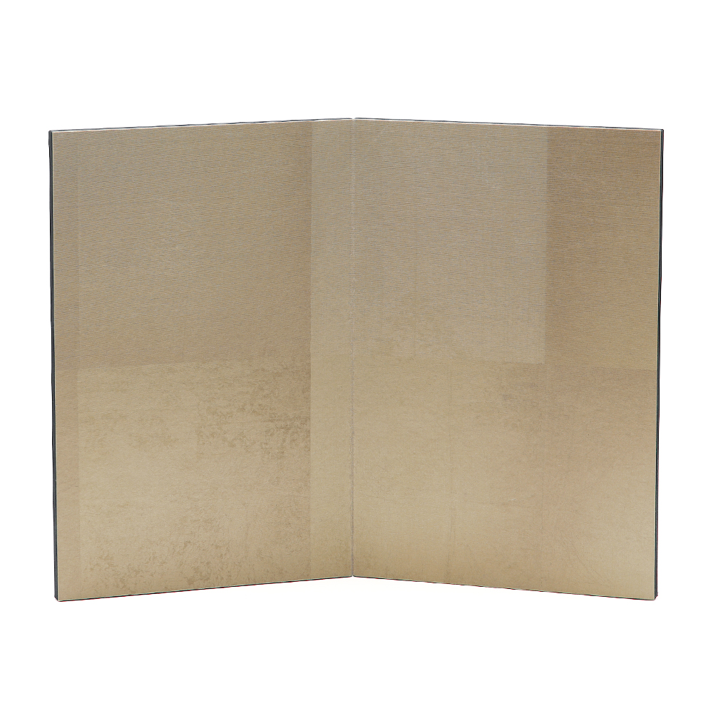 飾り台は、高岡漆器の富山県高岡市で製作した白塗りの国産飾り台。製法は伝統に忠実ながらモダンさが魅力です。屏風は明るい茶色を基調にした光沢ある屏風。パールゴールドに近いお色です。静岡県にて製作したこだわりの品で、天然繊維である生糸から作られた箔押し紙を利用し、一枚一枚手作業で配置していることから独特の美しさと屏風ごとの若干の個体差がございます。屏風と飾り台の組み合わせが大変スタイリッシュで重厚感があります。