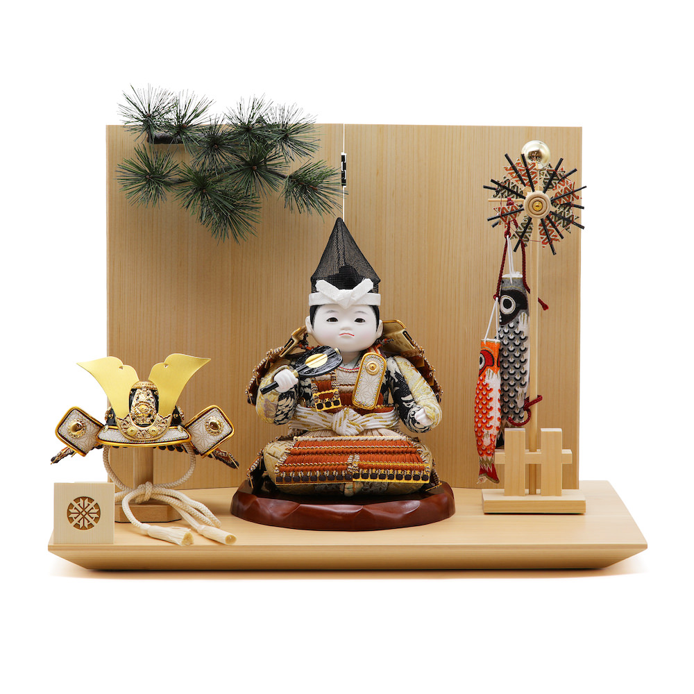 武者人形から小物まで全て国内の熟練職人の手で製作されたこだわりの品を選定しています。飾り台は木曽檜で製作した木目が美しい木製飾り台、屏風も飾り台と全く同じ製法で製作した二曲屏風です。統一感があり、武者人形の存在が際立つスタイリッシュな品です。