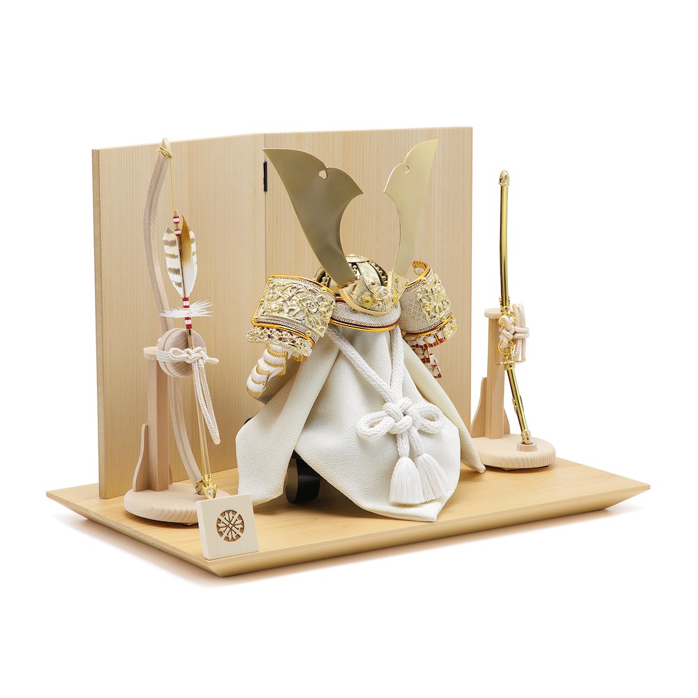 端午の節句らしい弓太刀は、飾り台に合わせた白木で製作した国産の品。国内で製作される最高品質の品です。弓太刀には「魔除け」の意味、「社会が平穏であるように」という平和への願いが込められています。