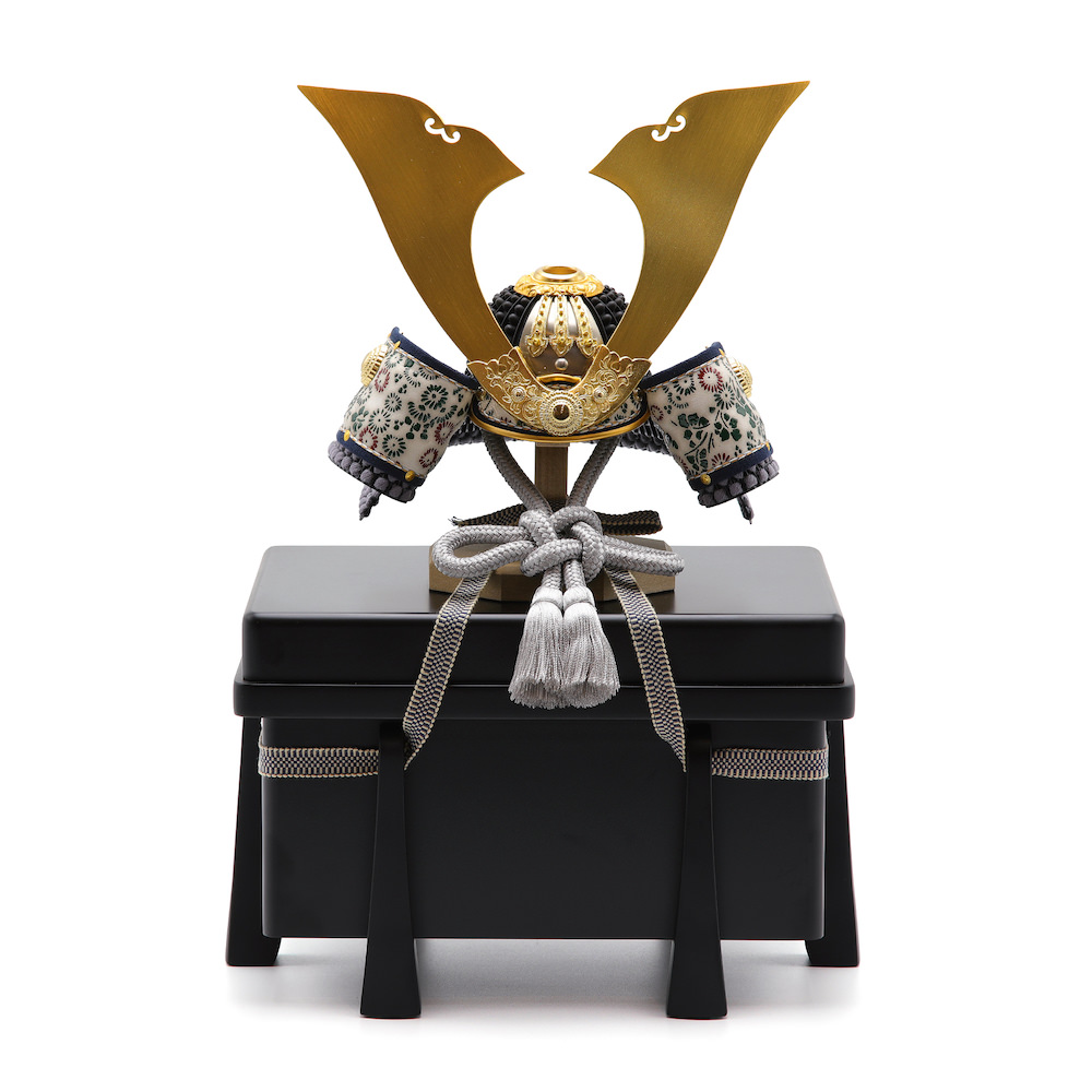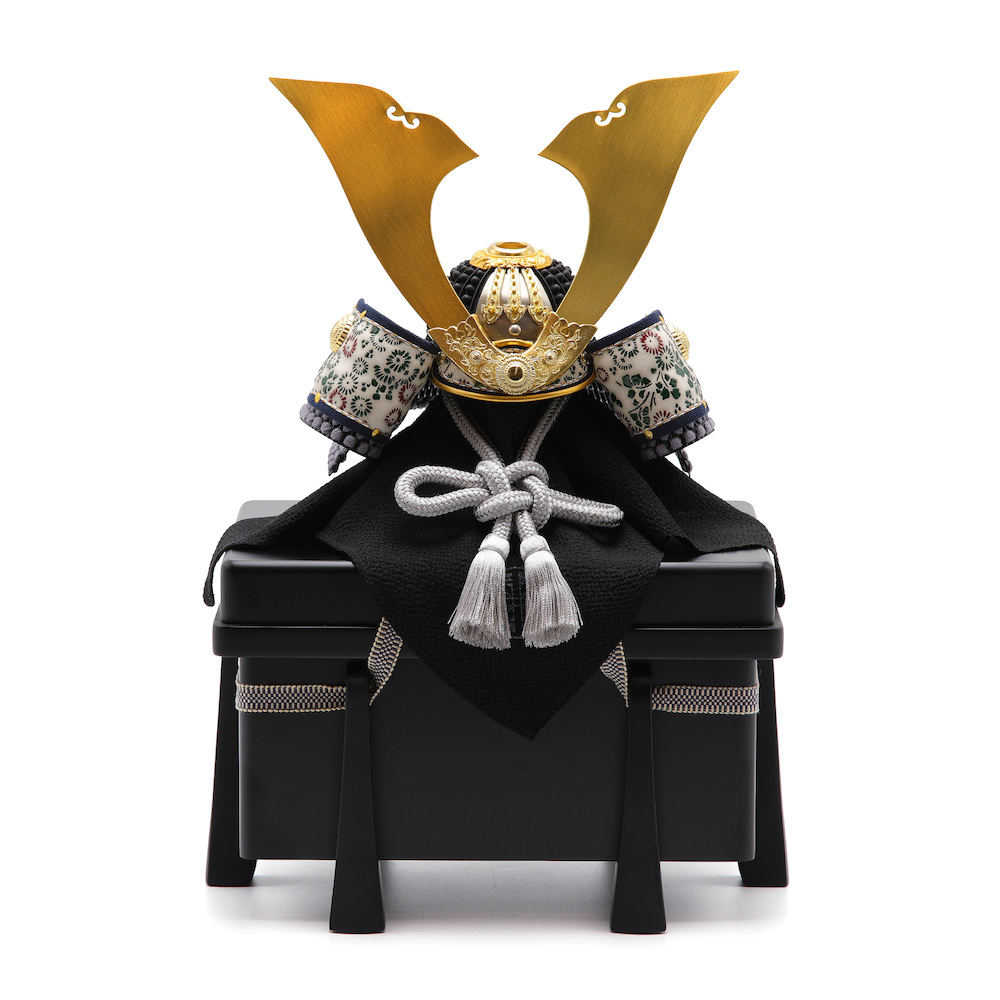 現代の住宅にも飾りやすく工房で企画したオリジナルの黒櫃は光沢を可能な限りなくし、マットな落ち着いた雰囲気が特徴的な木製の品。シンプルながら兜飾りの存在感が際立つこだわりの逸品です。