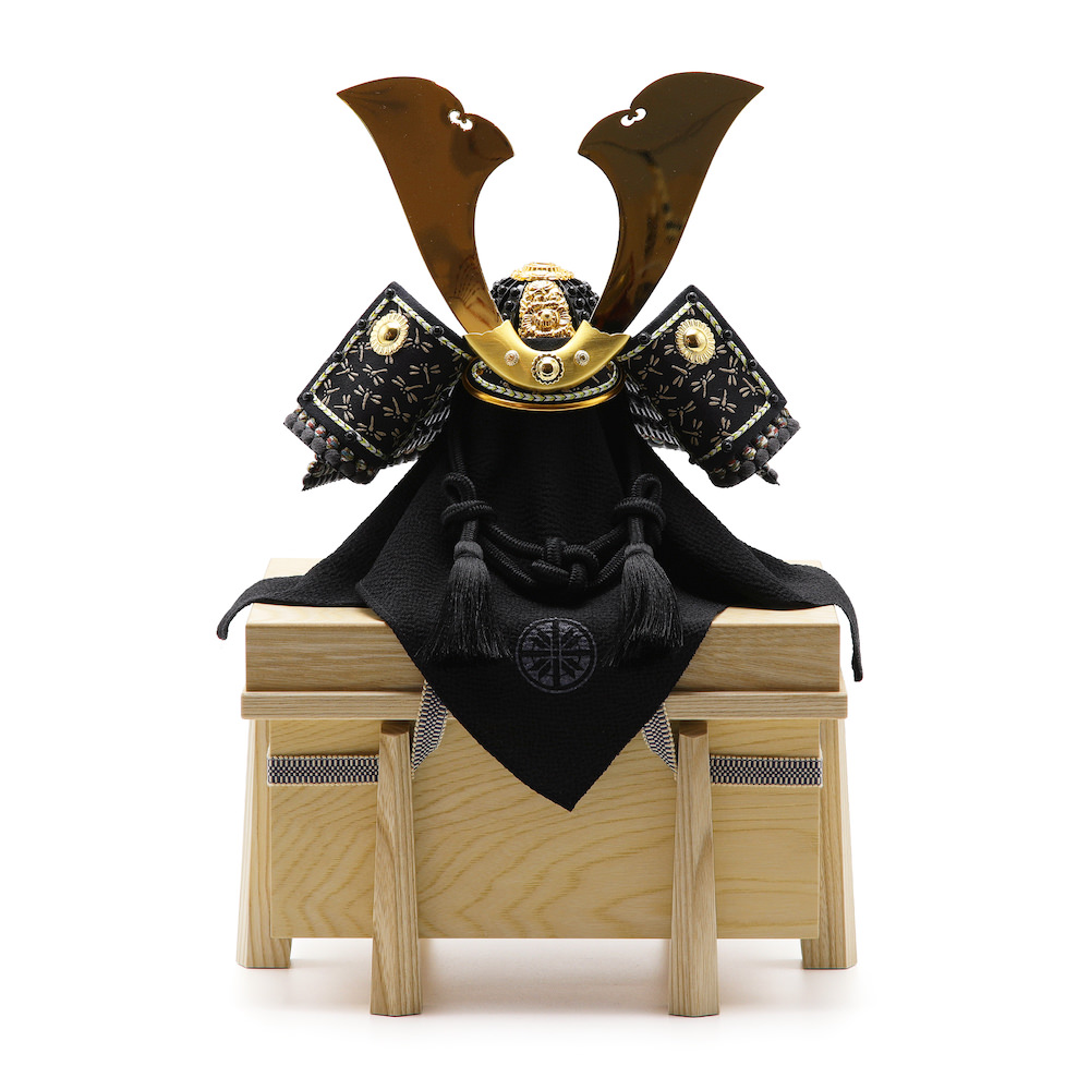 ※袱紗(ふくさ)という黒い布は兜を飾る際の傷防止のために付属しています。ご利用いただいて飾っても、ご利用いただかずに飾っていただいても差し支えありません。お好みでご利用ください。