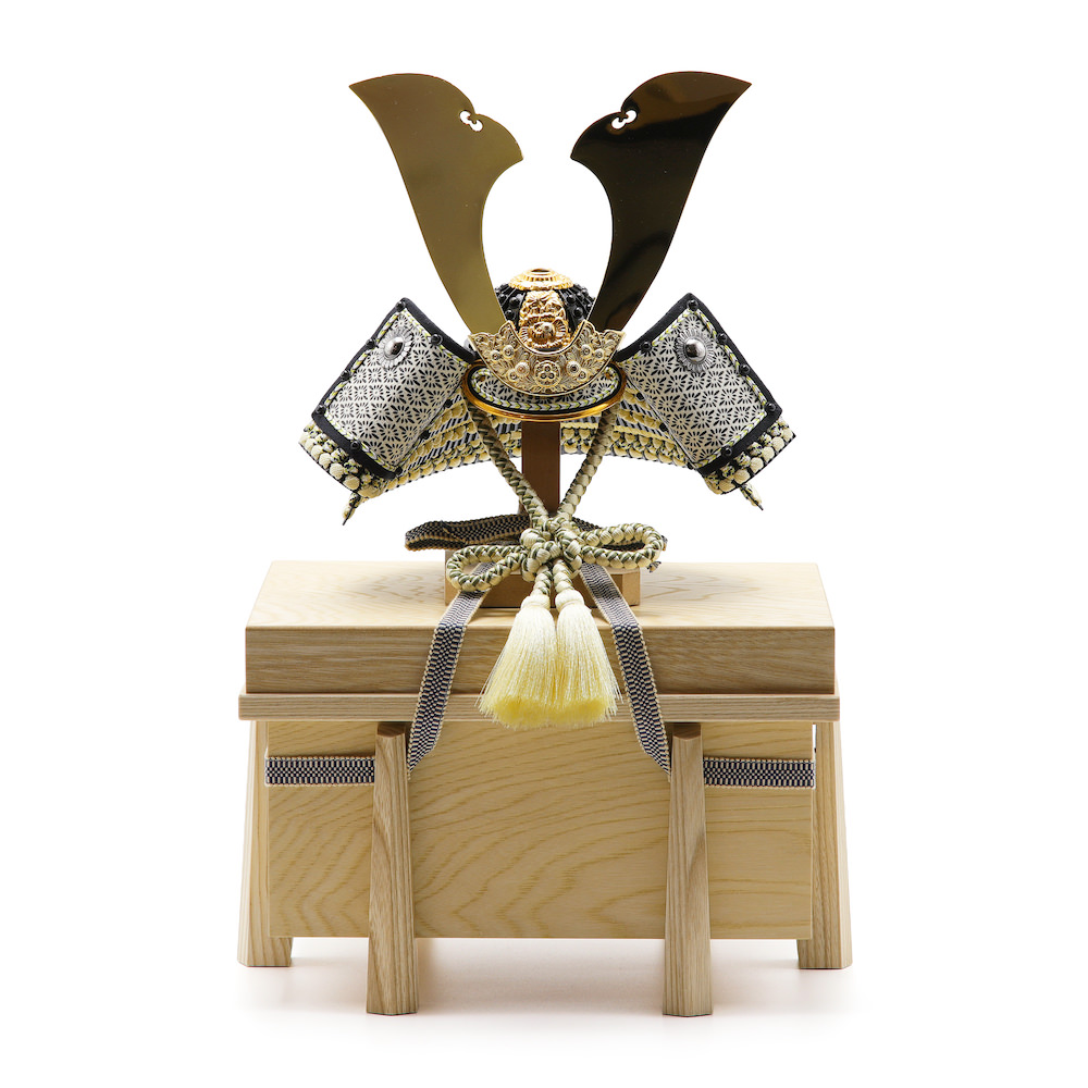 現代の住宅にも飾りやすく工房で企画したオリジナルの栓木櫃は木目のあたたかみとナチュラルな白木の雰囲気が特徴的な木製の品。シンプルながら兜飾りの存在感が際立つこだわりの逸品です。