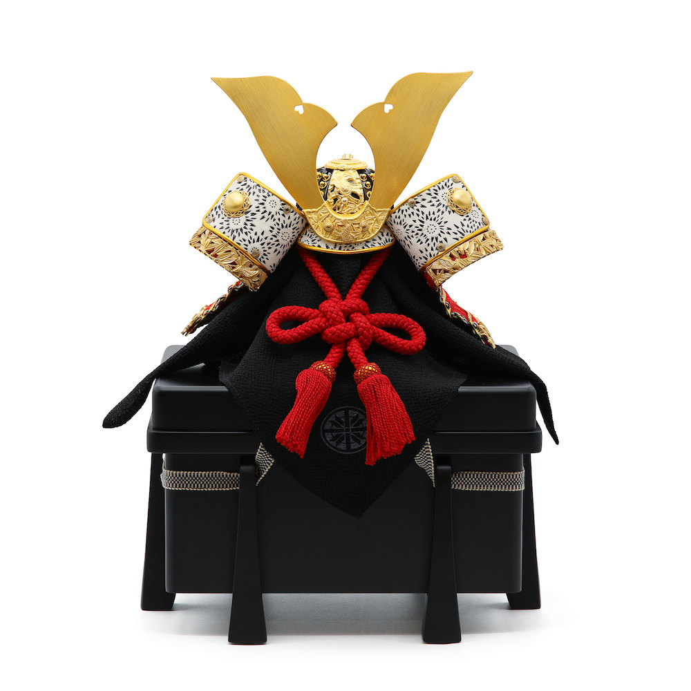 現代の住宅にも飾りやすく工房で企画したオリジナルの黒櫃は光沢を可能な限りなくし、マットな落ち着いた雰囲気が特徴的な木製の品。シンプルながら兜飾りの存在感が際立つこだわりの逸品です。