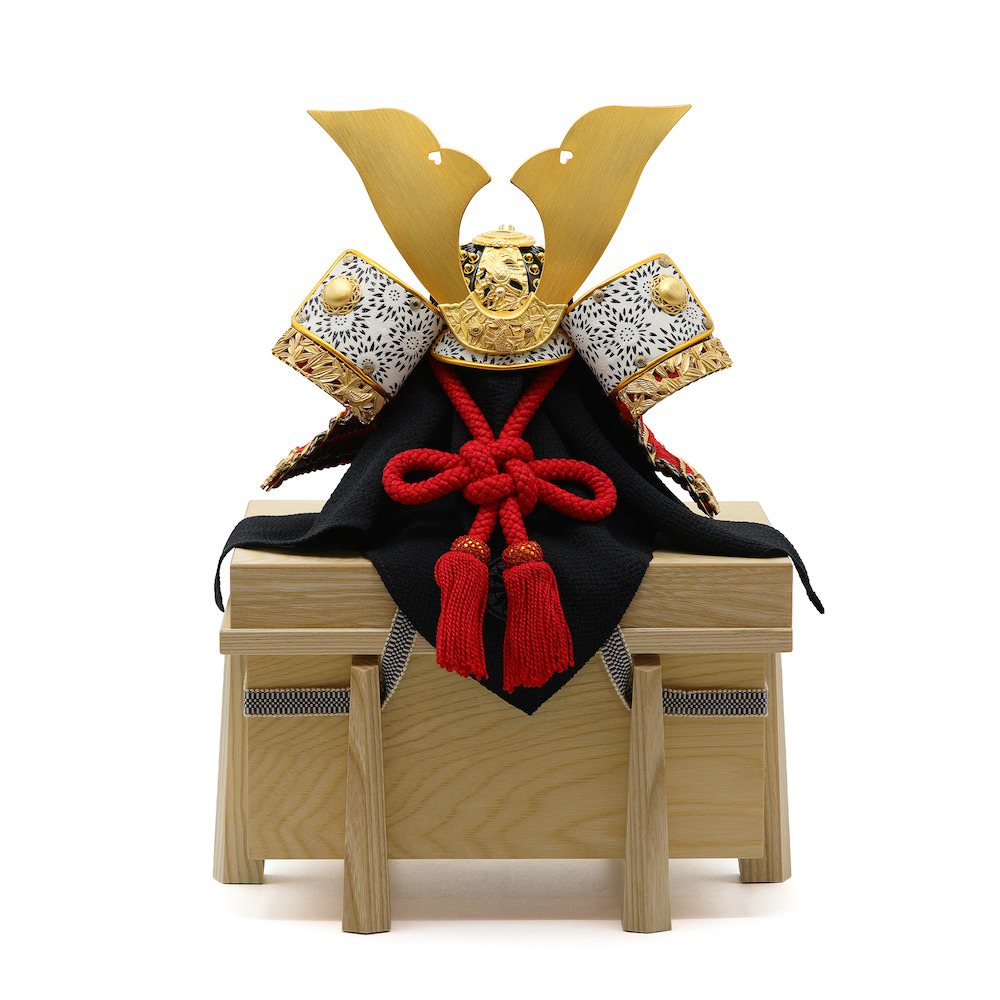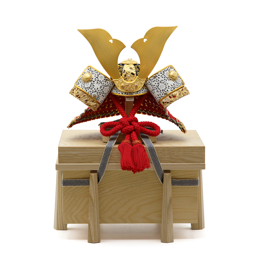 現代の住宅にも飾りやすく工房で企画したオリジナルの栓木櫃は木目のあたたかみとナチュラルな白木の雰囲気が特徴的な木製の品。シンプルながら兜飾りの存在感が際立つこだわりの逸品です。