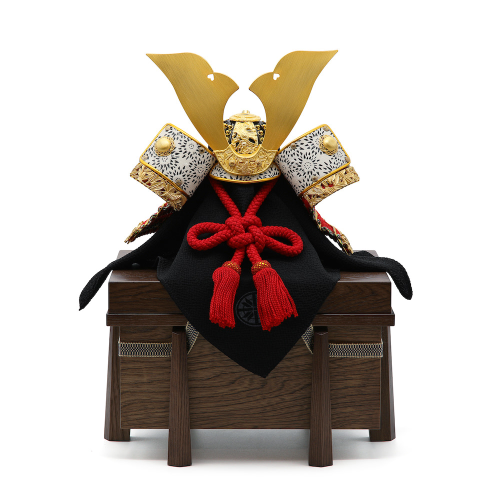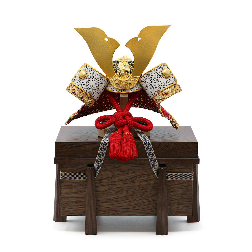 現代の住宅にも飾りやすく工房で企画したオリジナルの木製の櫃は木目のあたたかみとウォルナットの様な高級感と重厚感ある雰囲気が特徴的な木製の品。シンプルながら兜飾りの存在感が際立つこだわりの逸品です。