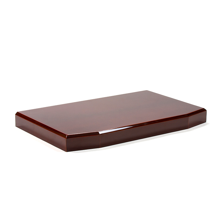 飾り台は、角を丁寧に取った六角の溜色塗り飾り台。軽くて扱いやすい大変上品な国産の品です。屏風は、若干光沢のある赤茶色の地に金色で格子柄のような模様に仕上げ、縁起の良い松を描いた屏風。静岡県にて製作したこだわりの品です。茶系でまとめた落ち着いた上品さが魅力的です。