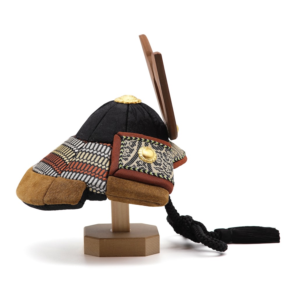 温かな印象の日本らしい落ち着いた配色が魅力的な木目込み兜「暖」、不思議な存在感がある兜に仕上がっています。どんなインテリアにもよく似合うデザインが魅力です。