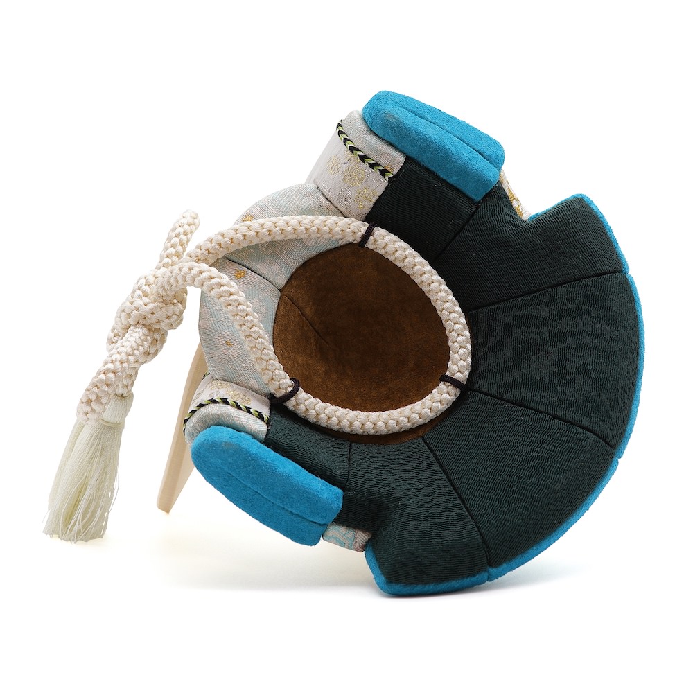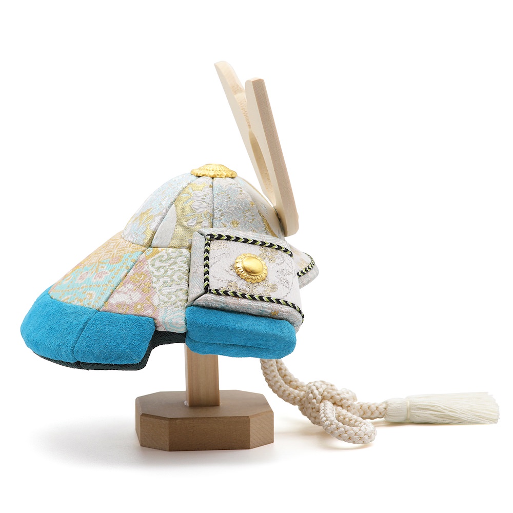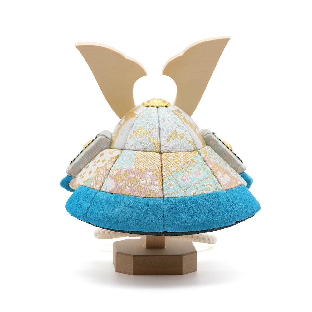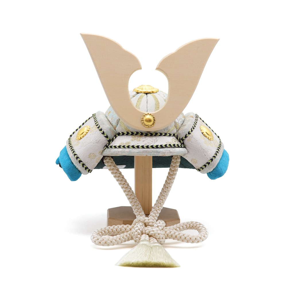 鮮やかな目が醒めるような水色と白を中心にまとめた木目込み兜「蒼」、小さくとも目が奪われる存在感、現代的なインテリアにもよく似合う優れたデザインが魅力です。