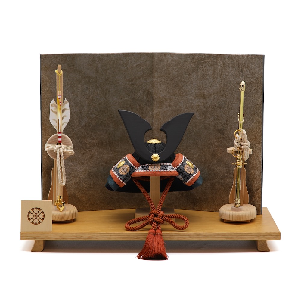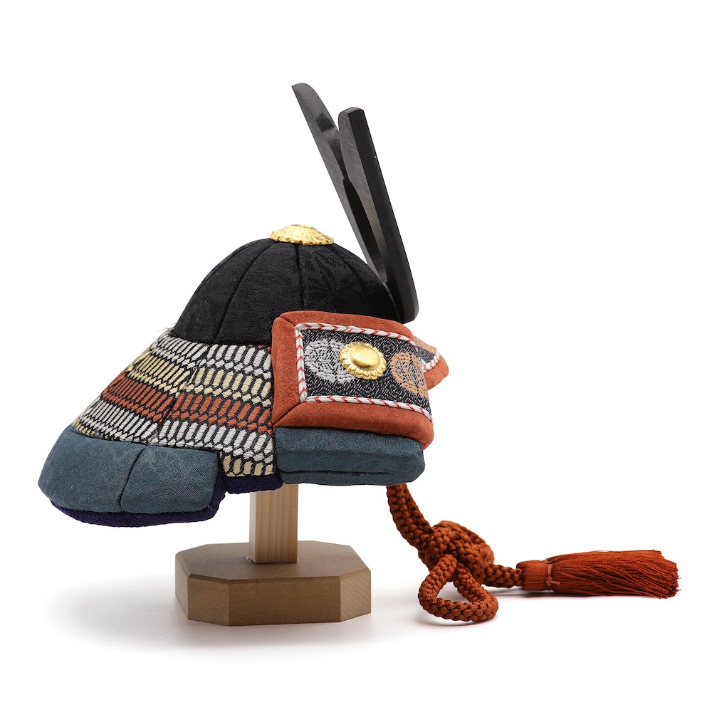 落ち着いた配色から品格を感じる木目込み兜「楓」、渋さを感じるくすんだお色の組み合わせは現代的でもあり、古来からの日本らしい美しさを感じます。どんなインテリアにもよく似合うデザインが魅力です。
