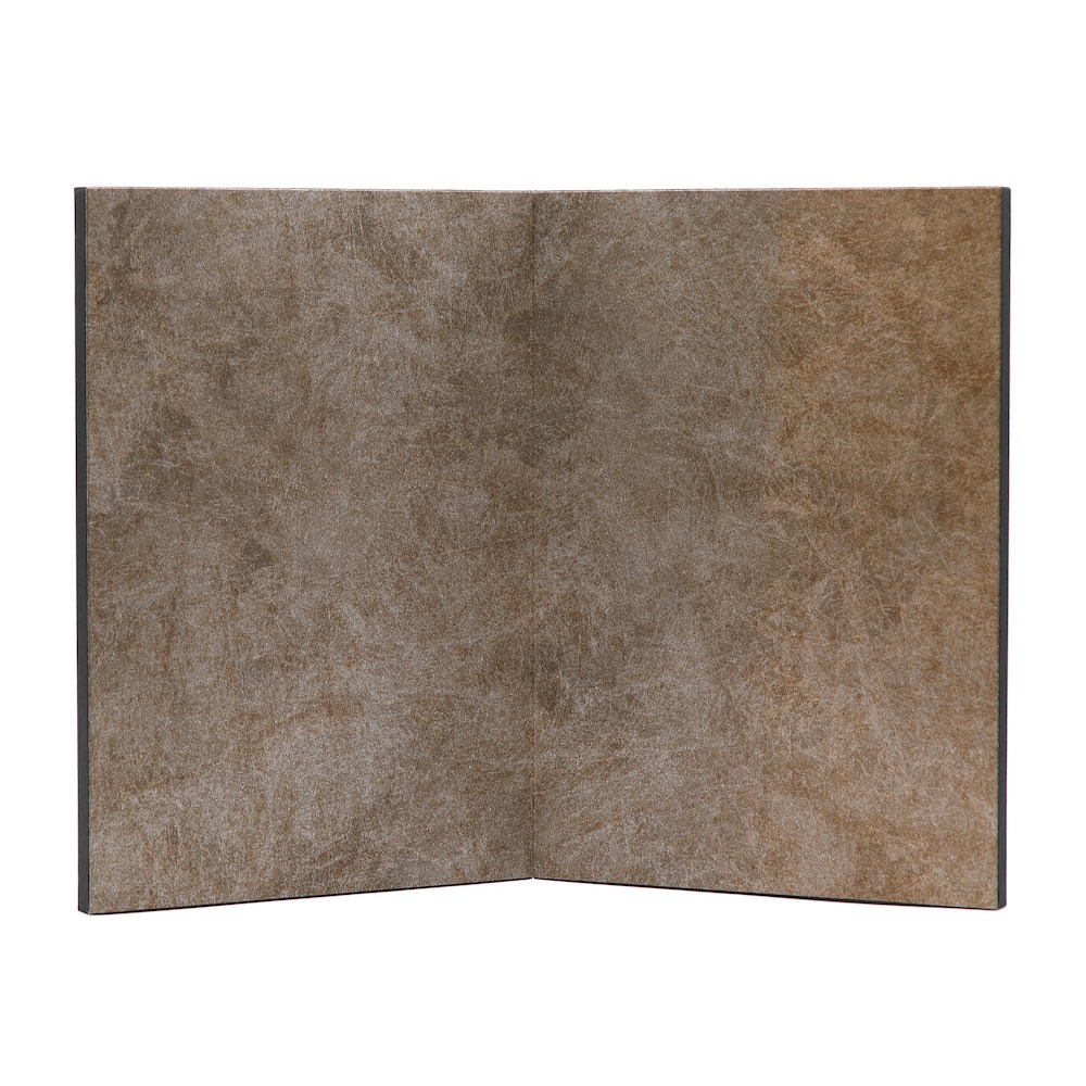 飾り台は、木目が美しい栓の木で製作したの国産飾り台。ナチュラルな雰囲気が魅力です。飾り台に合わせた屏風は、兜と飾り台に合わせて用意した特別な品。茶と銀の中間色、ざらっとした質感が特徴的な荒振り屏風。静岡県にて製作したこだわりの品です。一枚一枚手作業で配置していることから独特の美しさと屏風ごとの若干の個体差がございます。