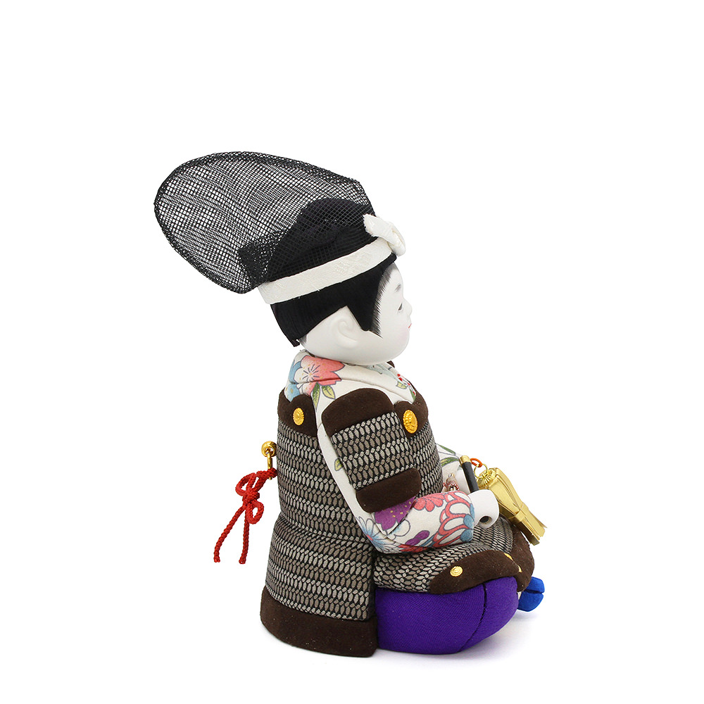 飾り台は国産の栓の木で製作した木目が美しい木製飾り台。奥行きが20cmと大変コンパクトでシンプルなすっきりとした印象が魅力的です。屏風は少々無骨ながら男の子らしい荒ぶりの国産金屏風です。端午の節句らしい菖蒲の花を添えました。武者人形だけでなく、小物にも国産で品質の高い品を揃え、こだわりを詰め込んだ本格武者人形飾りです。勇ましくも可愛らしい、どんなご自宅でも飾りやすいシンプルで洗練された武者人形飾りです。