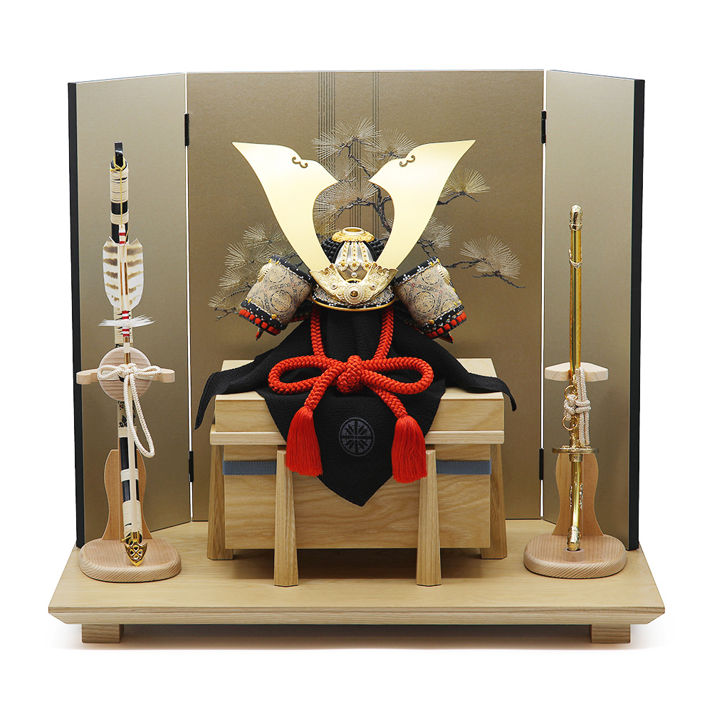 ※袱紗(ふくさ)という黒い布は兜を飾る際の傷防止のために付属しています。ご利用いただいて飾っても、ご利用いただかずに飾っていただいても差し支えありません。お好みでご利用ください。