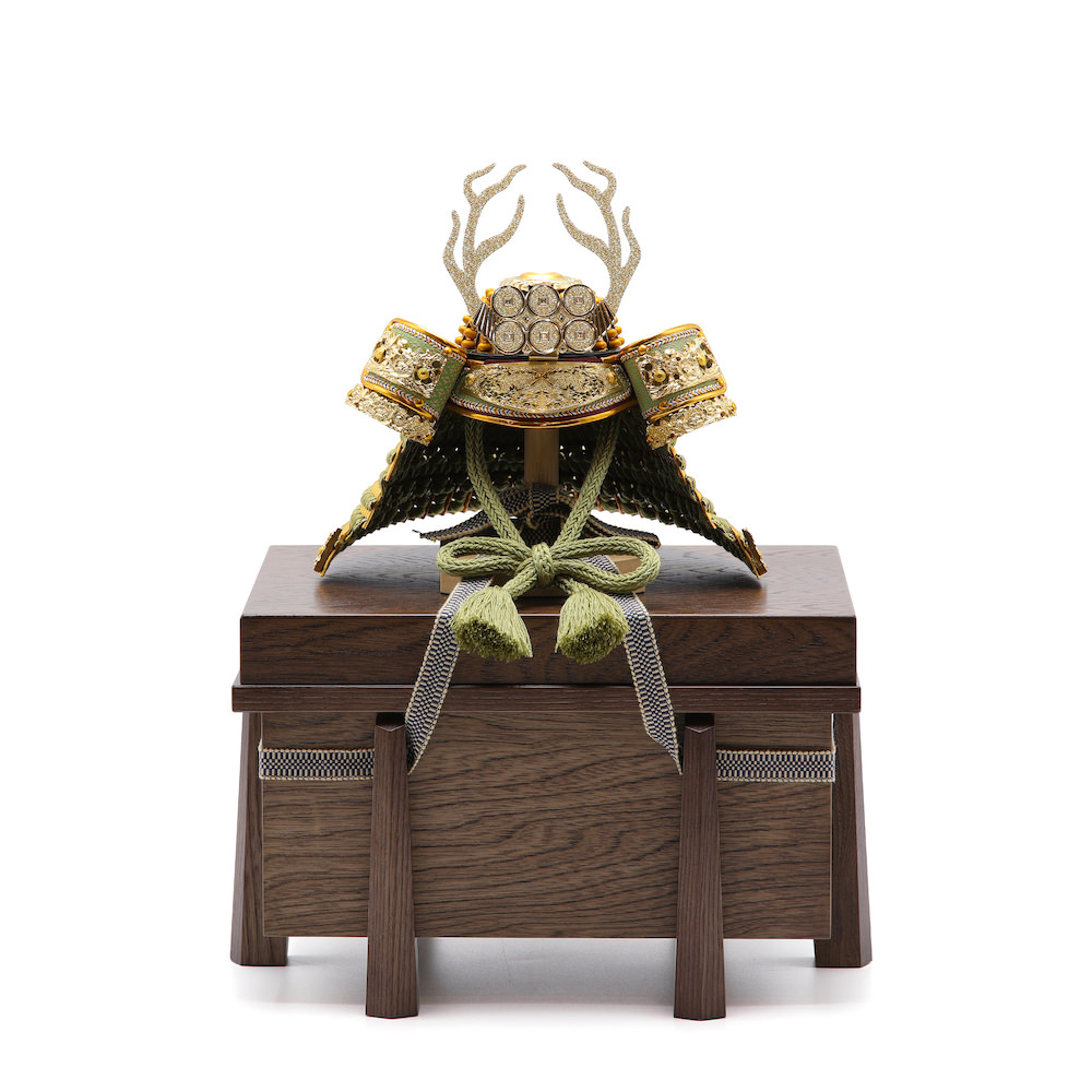 現代の住宅にも飾りやすく工房で企画したオリジナルの木製の櫃は木目のあたたかみとウォルナットの様な高級感と重厚感ある雰囲気が特徴的な木製の品。シンプルながら兜飾りの存在感が際立つこだわりの逸品です。