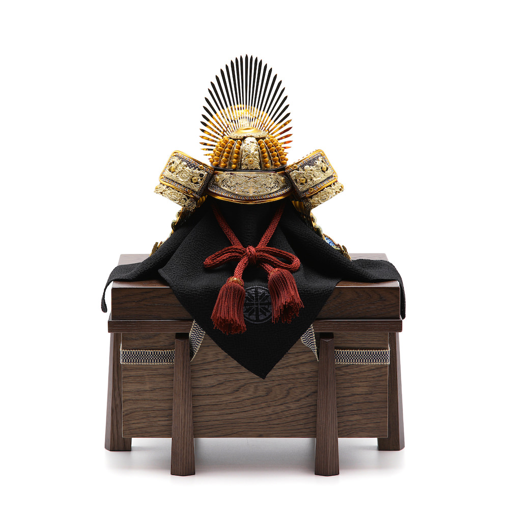 ※袱紗(ふくさ)という黒い布は兜を飾る際の傷防止のために付属しています。ご利用いただいて飾っても、ご利用いただかずに飾っていただいても差し支えありません。お好みでご利用ください。