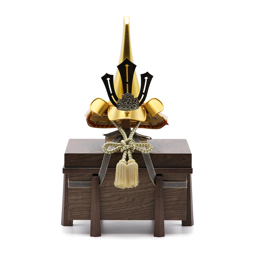 現代の住宅にも飾りやすく工房で企画したオリジナルの木製の櫃は木目のあたたかみとウォルナットの様な高級感と重厚感ある雰囲気が特徴的な木製の品。シンプルながら兜飾りの存在感が際立つこだわりの逸品です。