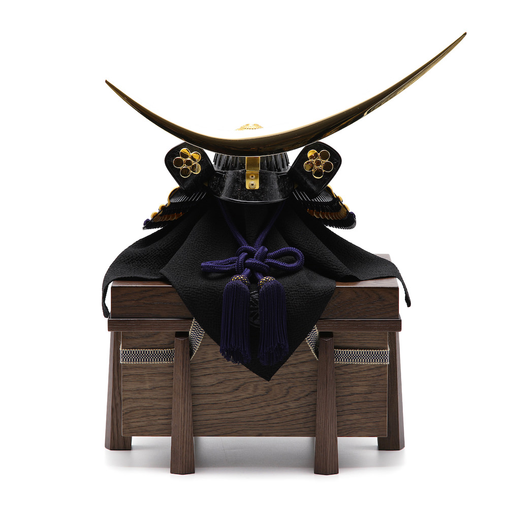 ※袱紗(ふくさ)という黒い布は兜を飾る際の傷防止のために付属しています。ご利用いただいて飾っても、ご利用いただかずに飾っていただいても差し支えありません。お好みでご利用ください。