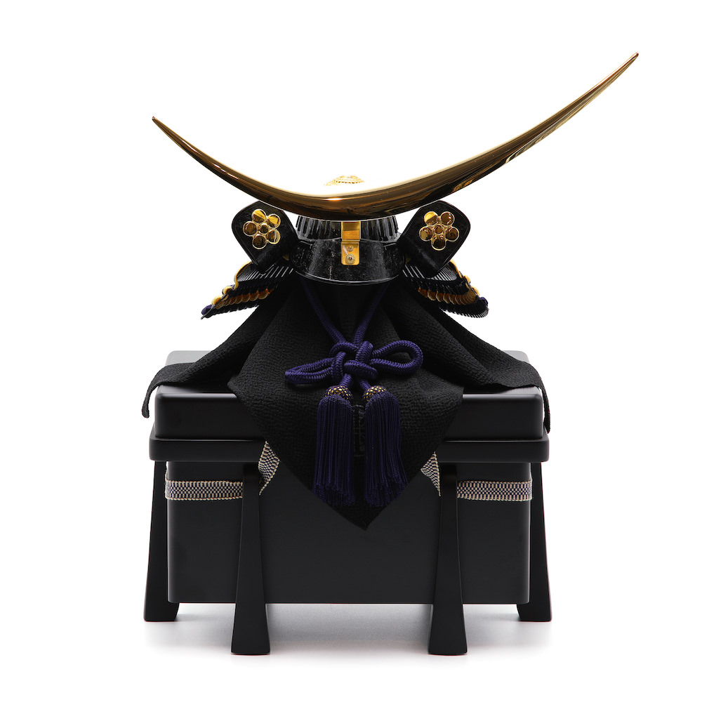 現代の住宅にも飾りやすく工房で企画したオリジナルの黒櫃は光沢を可能な限りなくし、マットな落ち着いた雰囲気が特徴的な木製の品。シンプルながら兜飾りの存在感が際立つこだわりの逸品です。