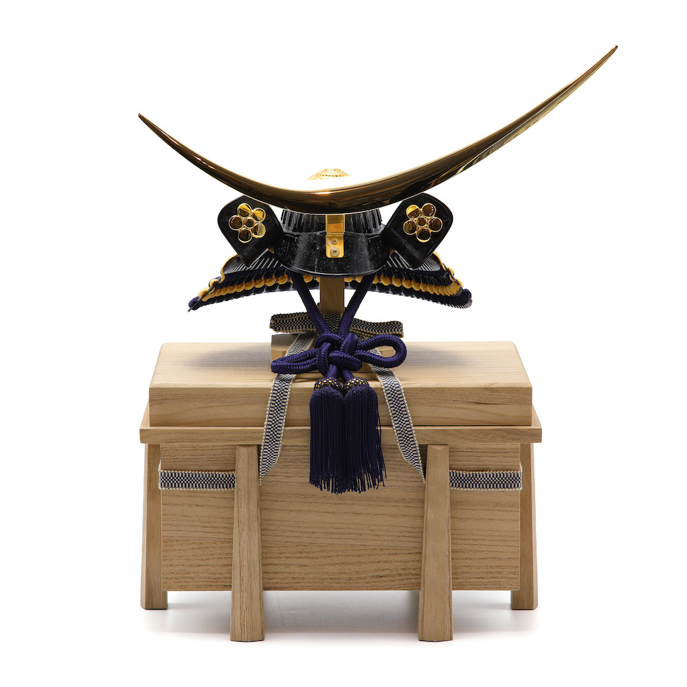 現代の住宅にも飾りやすく工房で企画したオリジナルの桐櫃は木目のあたたかみとナチュラルな雰囲気が特徴的な木製の品。栓木目櫃と比べると少々だけ濃いお色味です。シンプルながら兜飾りの存在感が際立つこだわりの逸品です。
