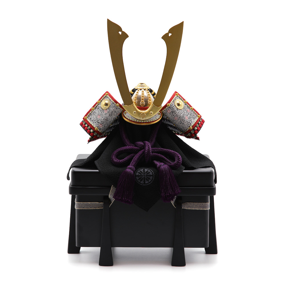 現代の住宅にも飾りやすく工房で企画したオリジナルの黒櫃は光沢を可能な限りなくし、マットな落ち着いた雰囲気が特徴的な木製の品。シンプルながら兜飾りの存在感が際立つこだわりの逸品です。