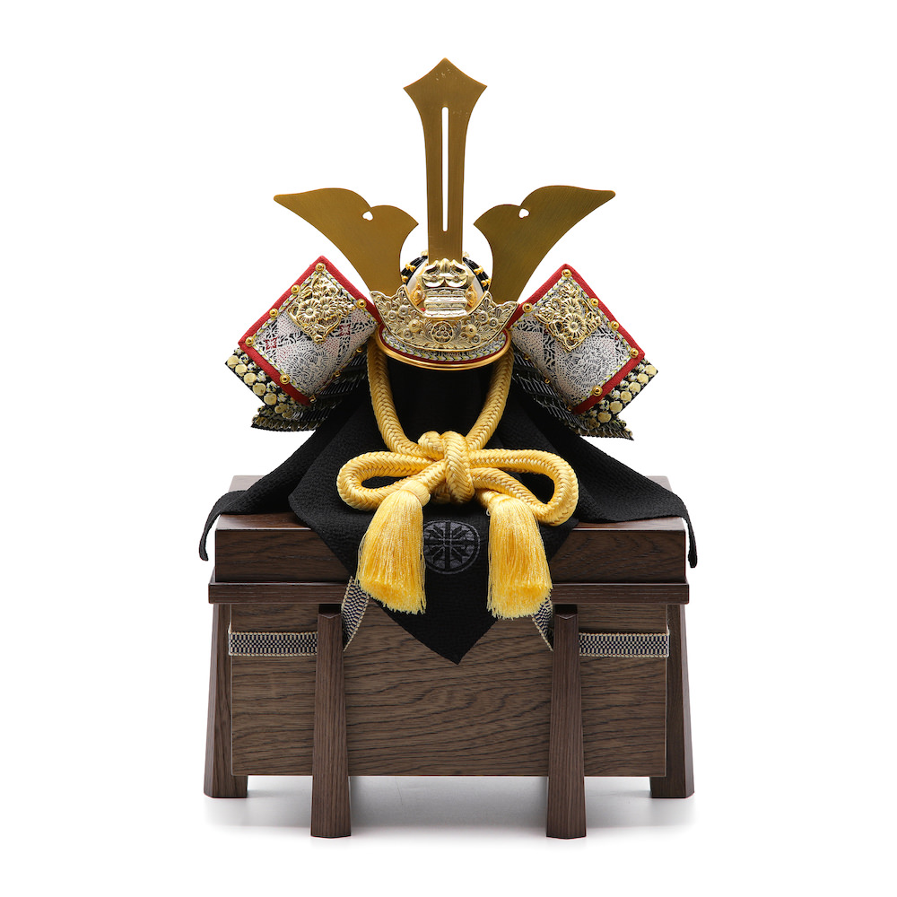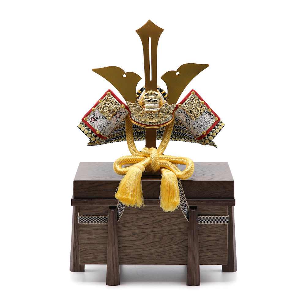 現代の住宅にも飾りやすく工房で企画したオリジナルの木製の櫃は木目のあたたかみとウォルナットの様な高級感と重厚感ある雰囲気が特徴的な木製の品。シンプルながら兜飾りの存在感が際立つこだわりの逸品です。