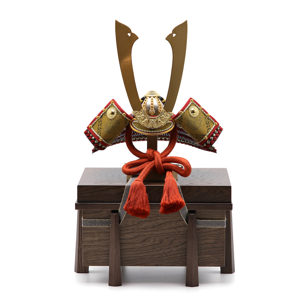 現代の住宅にも飾りやすく工房で企画したオリジナルの木製の櫃は木目のあたたかみとウォルナットの様な高級感と重厚感ある雰囲気が特徴的な木製の品。シンプルながら兜飾りの存在感が際立つこだわりの逸品です。