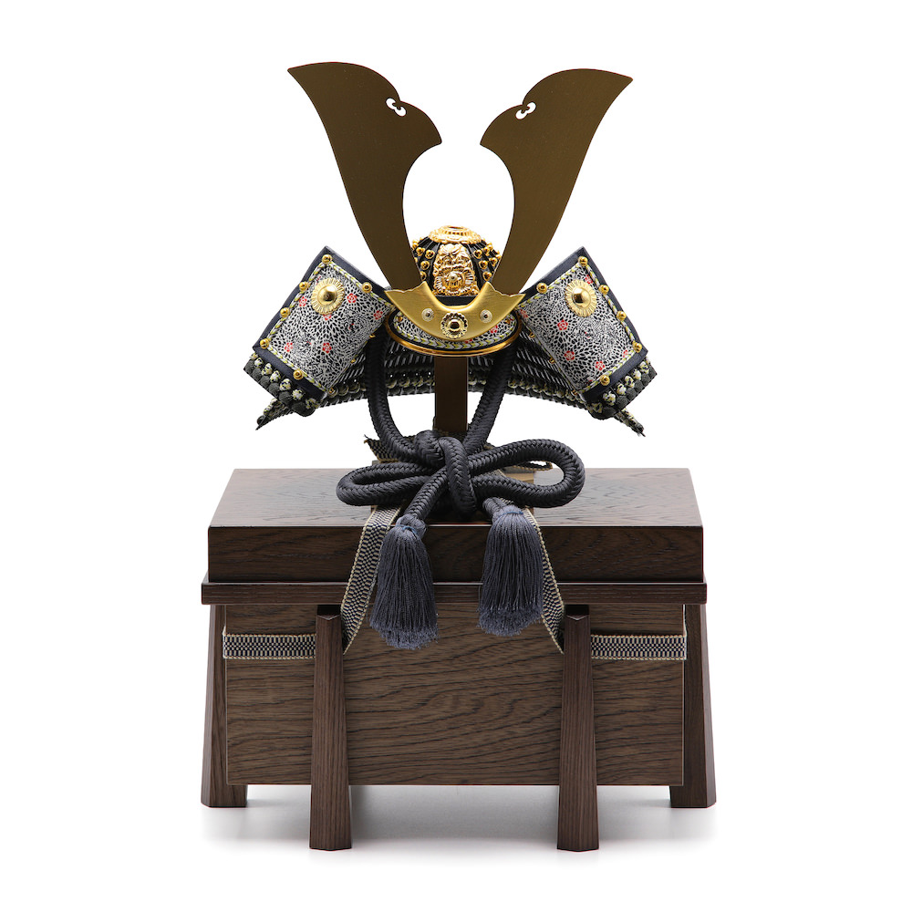 現代の住宅にも飾りやすく工房で企画したオリジナルの木製の櫃は木目のあたたかみとウォルナットの様な高級感と重厚感ある雰囲気が特徴的な木製の品。シンプルながら兜飾りの存在感が際立つこだわりの逸品です。
