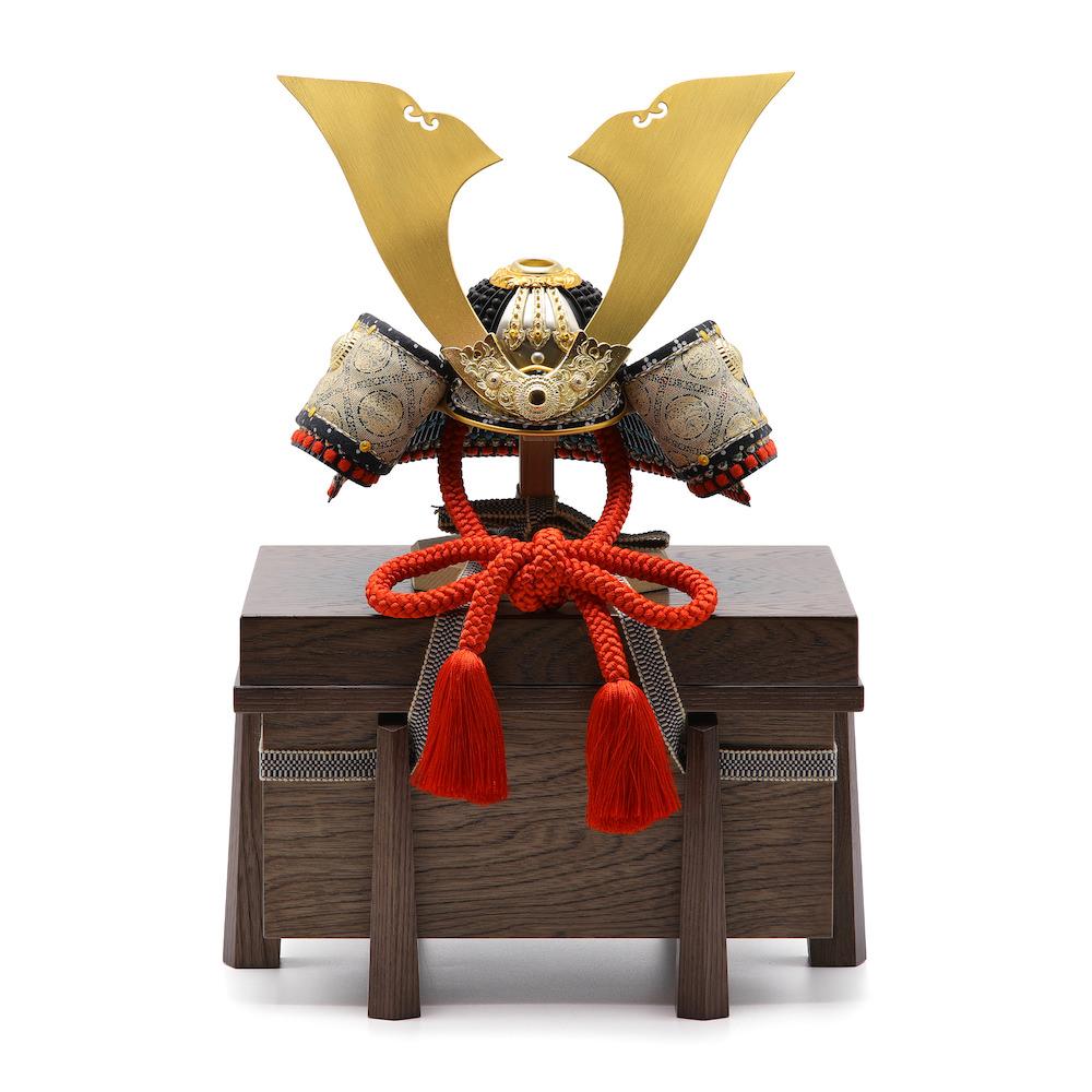 現代の住宅にも飾りやすく工房で企画したオリジナルの木製の櫃は木目のあたたかみとウォルナットの様な高級感と重厚感ある雰囲気が特徴的な木製の品。シンプルながら兜飾りの存在感が際立つこだわりの逸品です。