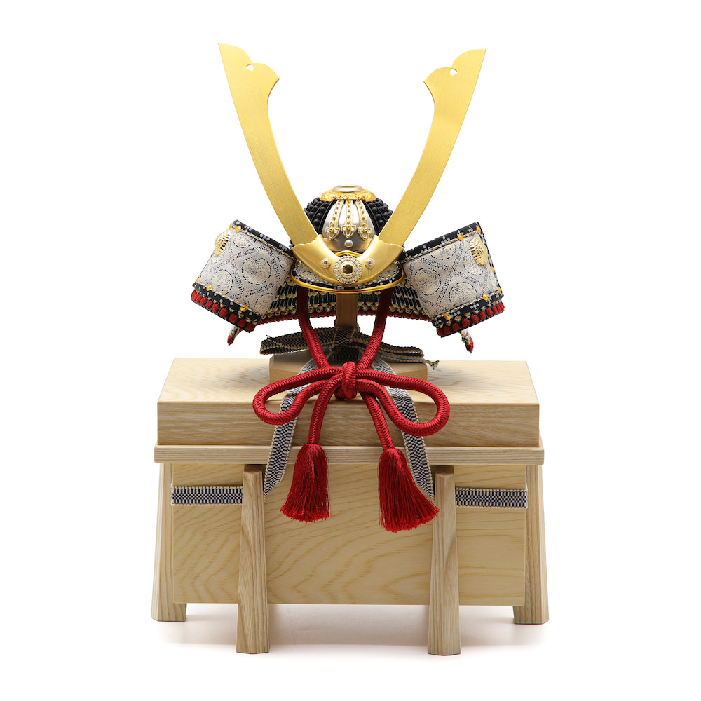 現代の住宅にも飾りやすく工房で企画したオリジナルの栓木櫃は木目のあたたかみとナチュラルな白木の雰囲気が特徴的な木製の品。シンプルながら兜飾りの存在感が際立つこだわりの逸品です。