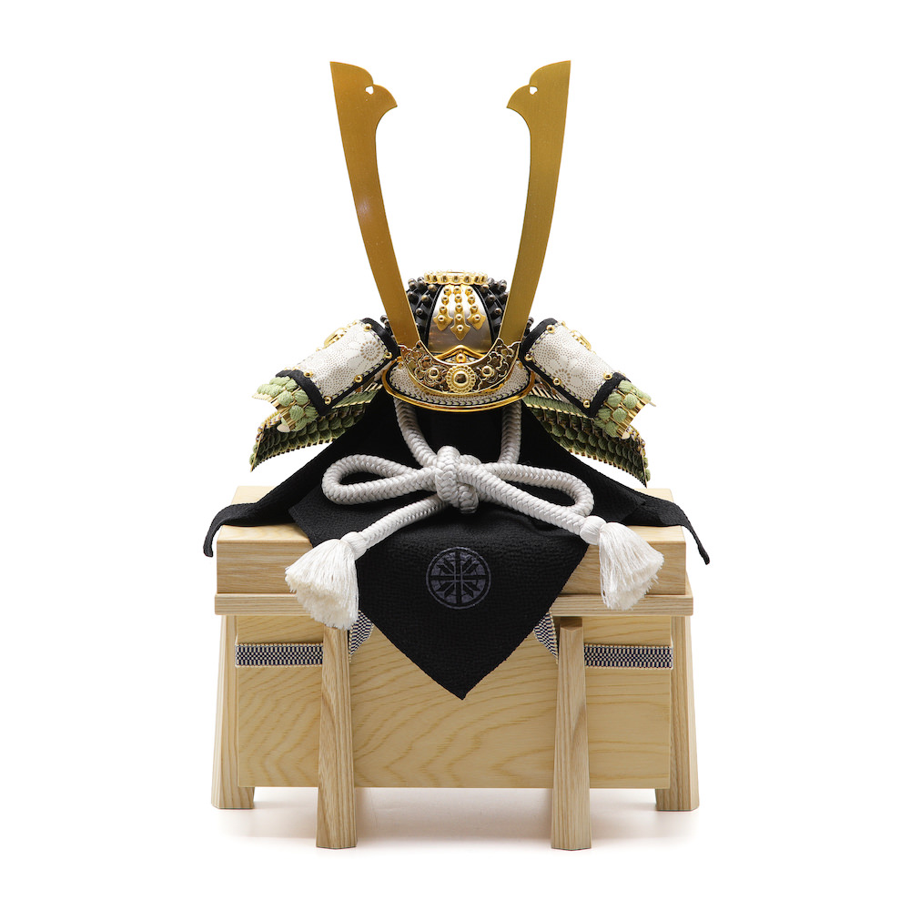 ※袱紗(ふくさ)という黒い布は兜を飾る際の傷防止のために付属しています。ご利用いただいて飾っても、ご利用いただかずに飾っていただいても差し支えありません。お好みでご利用ください。