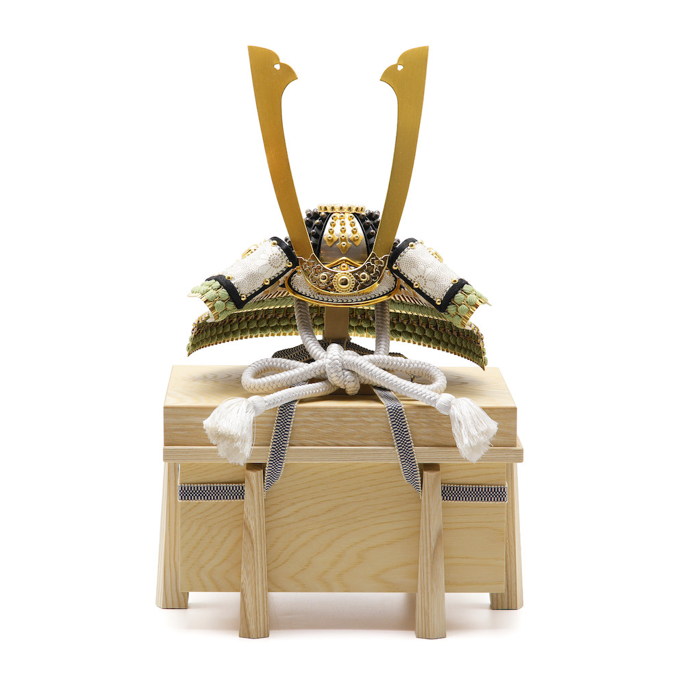 現代の住宅にも飾りやすく工房で企画したオリジナルの栓木櫃は木目のあたたかみとナチュラルな白木の雰囲気が特徴的な木製の品。シンプルながら兜飾りの存在感が際立つこだわりの逸品です。