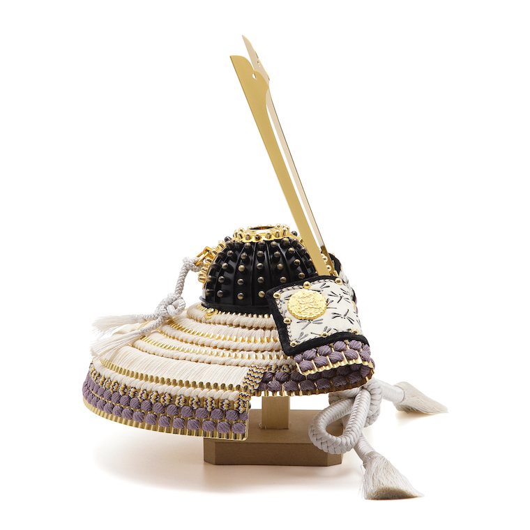 島根県にある日御碕神社(ひのみさきじんじゃ)に源頼朝が奉納したと言われる鎌倉時代の白糸威鎧をモデルに工房真と国内の甲冑師にて製作を致しました。威は名前の通り、白色をメインに藤色と二色で明るく仕上げ、現代的な印象にに仕上げました。