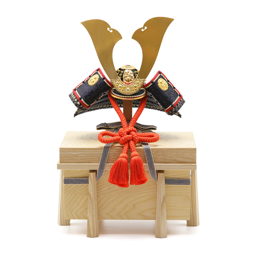 現代の住宅にも飾りやすく工房で企画したオリジナルの栓木櫃は木目のあたたかみとナチュラルな白木の雰囲気が特徴的な木製の品。シンプルながら兜飾りの存在感が際立つこだわりの逸品です。
