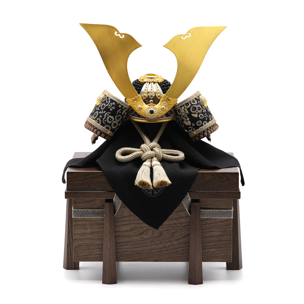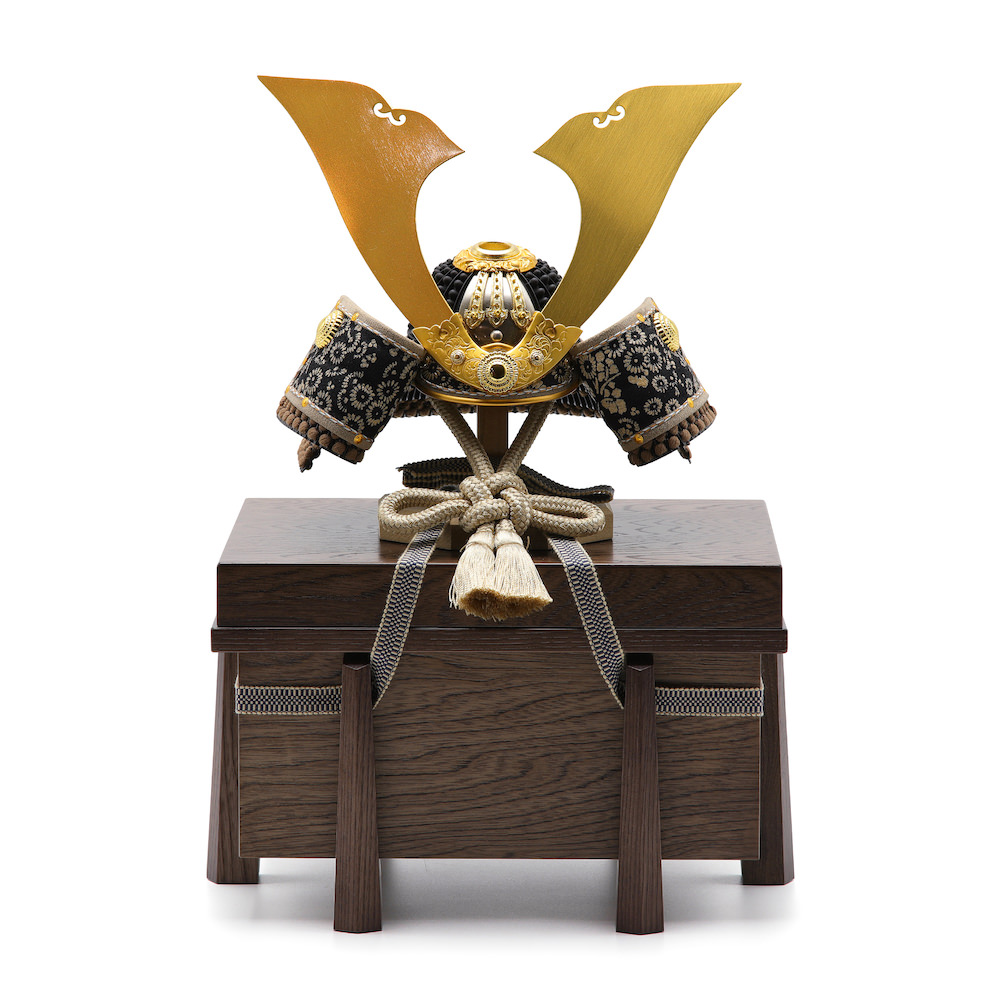 現代の住宅にも飾りやすく工房で企画したオリジナルの木製の櫃は木目のあたたかみとウォルナットの様な高級感と重厚感ある雰囲気が特徴的な木製の品。シンプルながら兜飾りの存在感が際立つこだわりの逸品です。