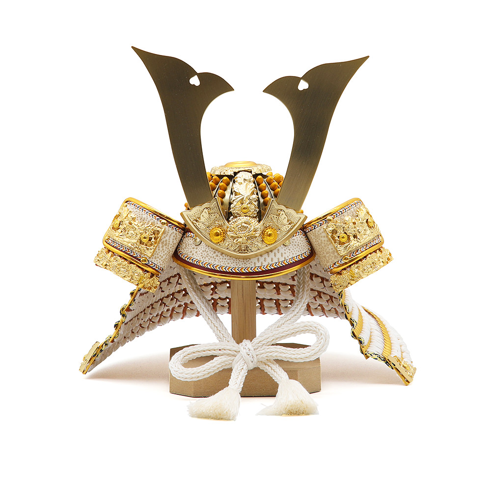 端午の節句らしい弓太刀は、黒塗りの伝統的な品を添えました。伝統的ながら少し現代的で、兜の存在が際立つスタイリッシュな品です。